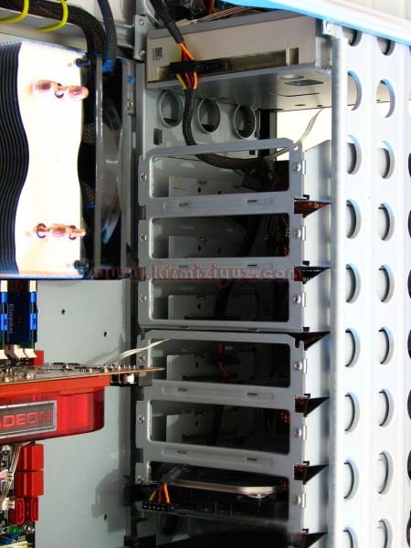 Biraz zor seçilse de, aslında kasanın 5.25″ sürücü yuvalarında optik ve sabit sürücüler var.